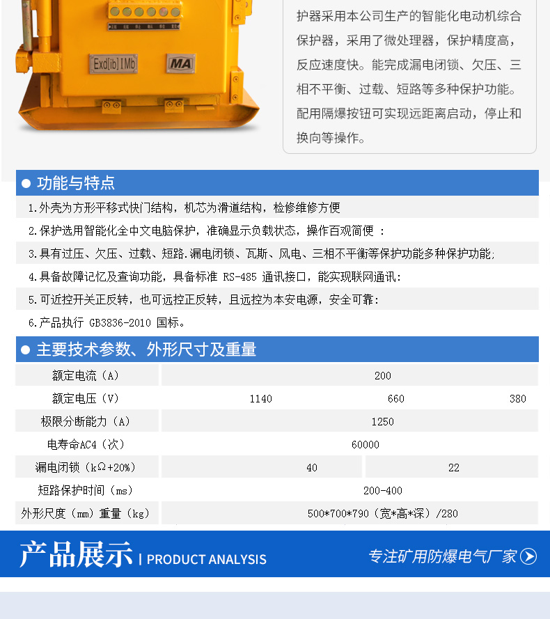 QJZ-200/1140(660)N礦用隔爆兼本質(zhì)安全型可逆真空電磁起動(dòng)器